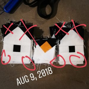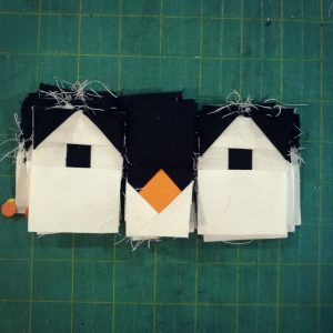 By the 15th of August all I had to show for myself was 3 completed components of the penguin faces. Not where I thought I’d be. Many people in this so long already had finished blocks, and they’re just so cute! but then others were still waiting to receive their fabric kits. So I pressed on.