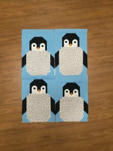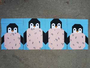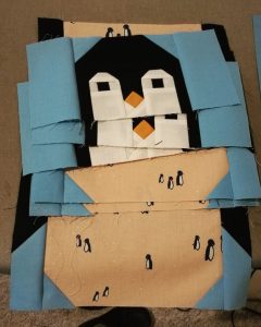 […] I meant to finish all of the Penguin Faces last month so finishing the Blocks would be easy. But I spent a whole day of sewing snowballing all of the eye units incorrectly.  Ugh. Once I got my sewing mo-jo back, I really just wanted to complete 1 block.  So I assembled 10 Heads, enough so I could reach my August OMG.  I’m proud to say I did reach my goal of 8 penguin blocks! […]