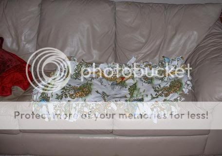 After what seems like an eternity of cutting and tying, you will end up with a lovely, cozy little blanket for your pet. It is just the right size to lay on the seat of your couch (or over the top)… wherever your pet likes to sit. It saves your furniture from claw marks and animal hair. When company comes, just fold them up and stash them away! These blankets are machine washable